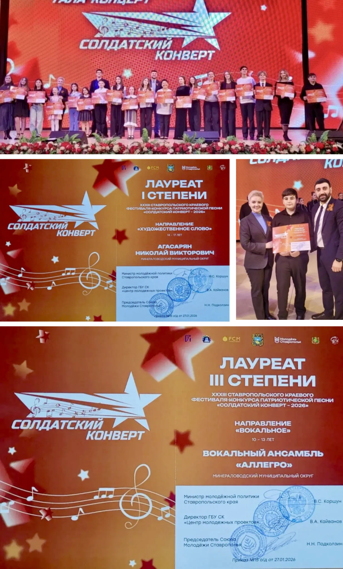 Региональный этап патриотического конкурса «Солдатский конверт»! 2026-02-13 15:05:00 11 февраля в Ставропольском Дворце детского творчества состоялась торжественная церемония награждения Лауреатов Регионального этапа патриотического конкурса «Солдатский конверт»!