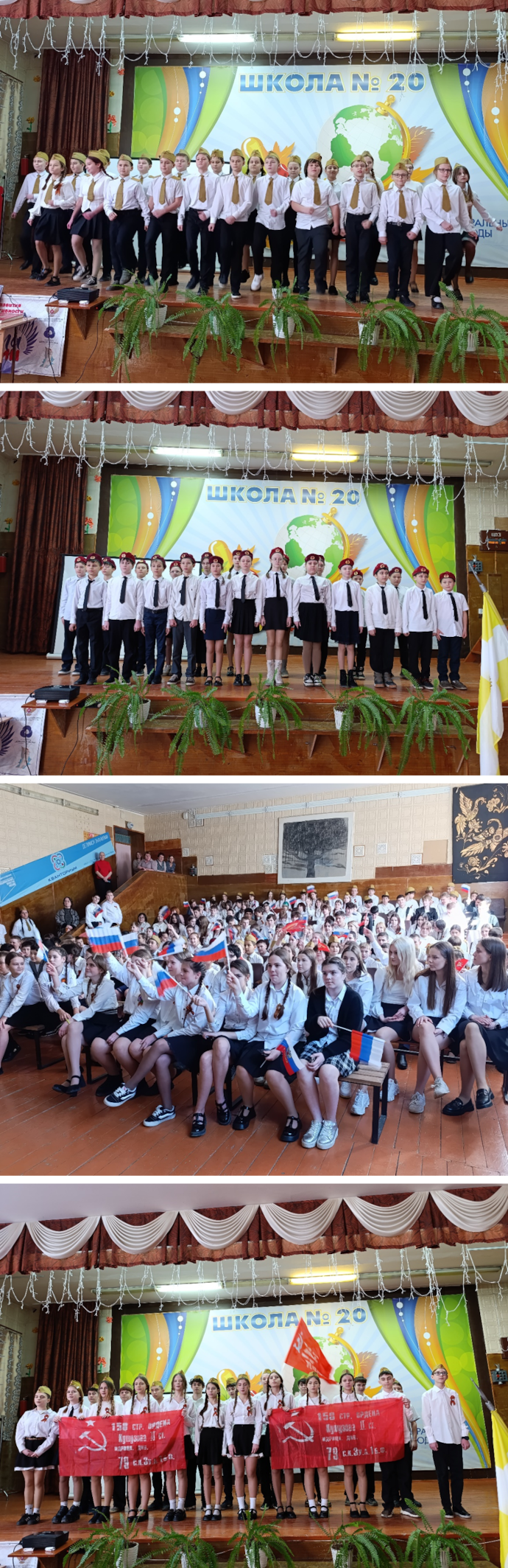 Учащиеся исполняли как известные песни о войне, так и новые песни о России. Среди них «Катюша», «Славный День Победы», «Прадедушка» и, конечно, песня «День Победы». Учащиеся получили не только грамоты, но и огромный эмоциональный заряд. Концерт стал ярким финалом месячника «Оборонно-массовой и спортивной работы».