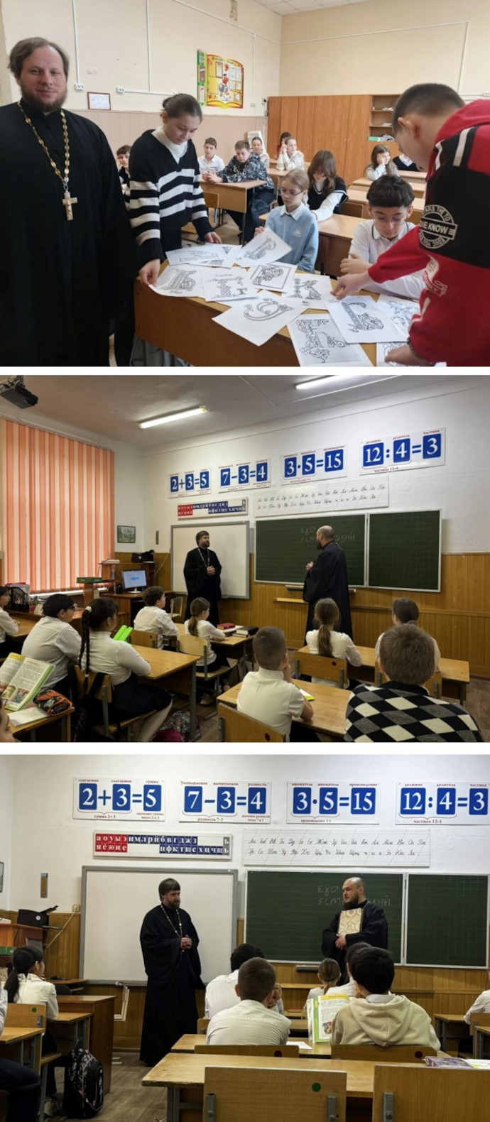 В эти дни школы посетили священнослужители храмов нашего района. Они рассказали ребятам о возникновении и развитии письменности на Руси. Ученикам посчастливилось прикоснуться к старинным книгам и полистать их страницы, увидеть прекрасную славянскую письменность.